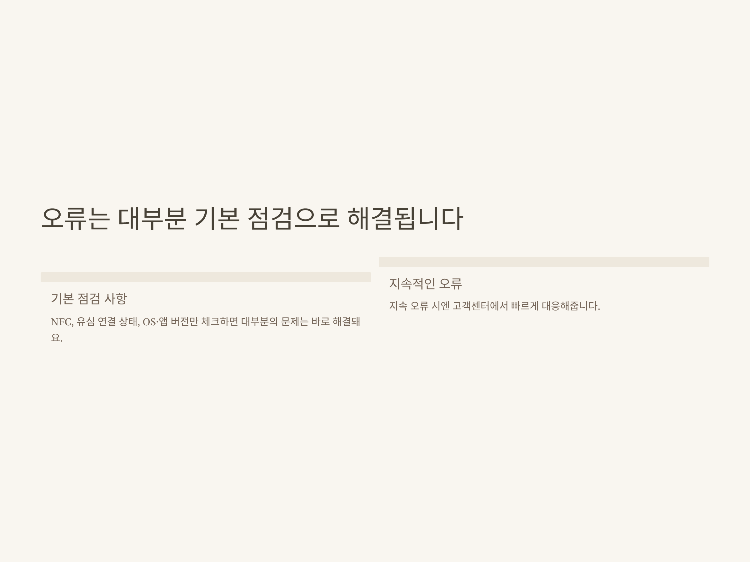| 오류/해결 | NFC·유심·앱 버전 점검 필수 | 공식 Q&A |