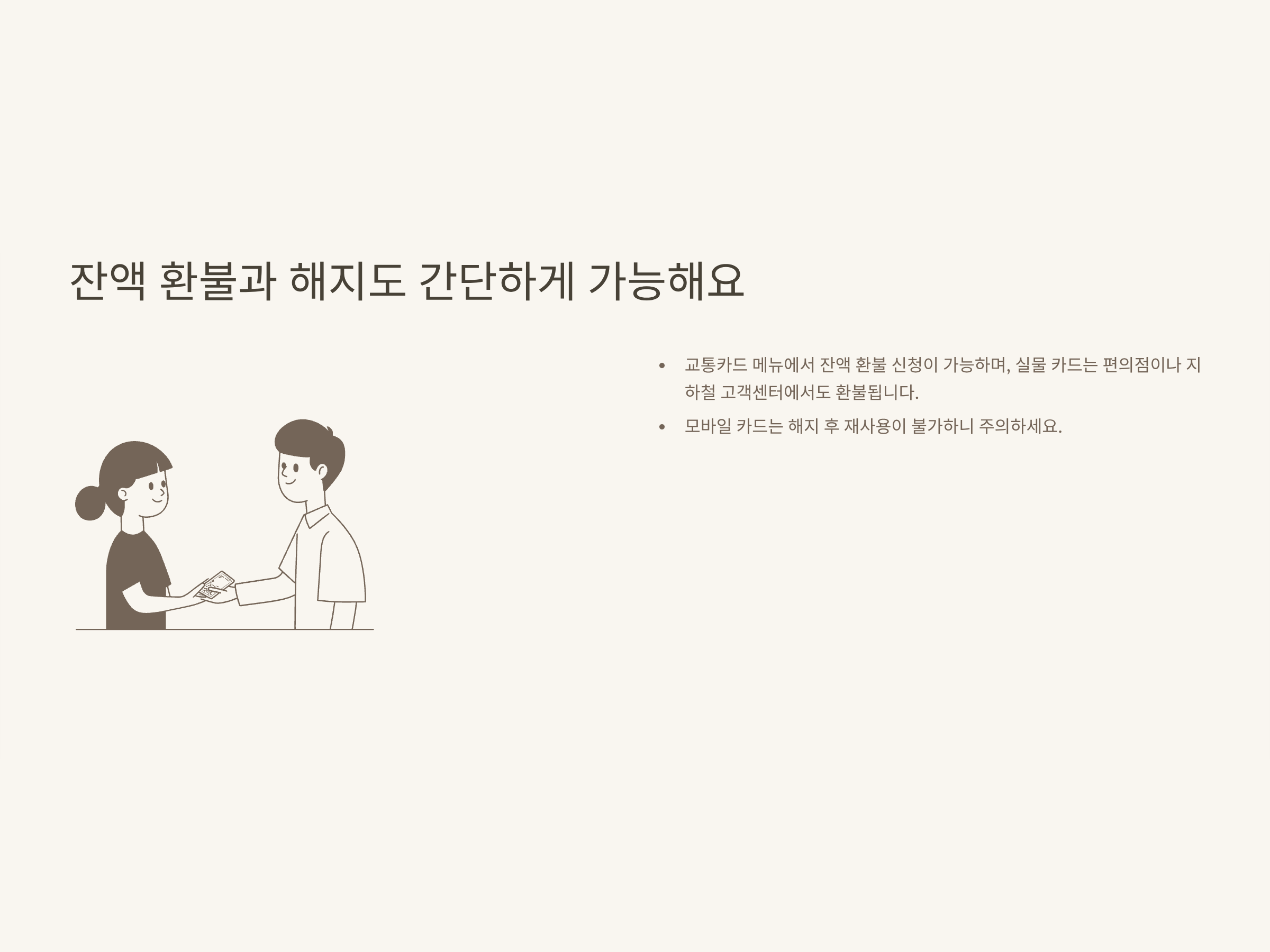 - 실물카드는 편의점·지하철 고객센터에서도 환불 가능