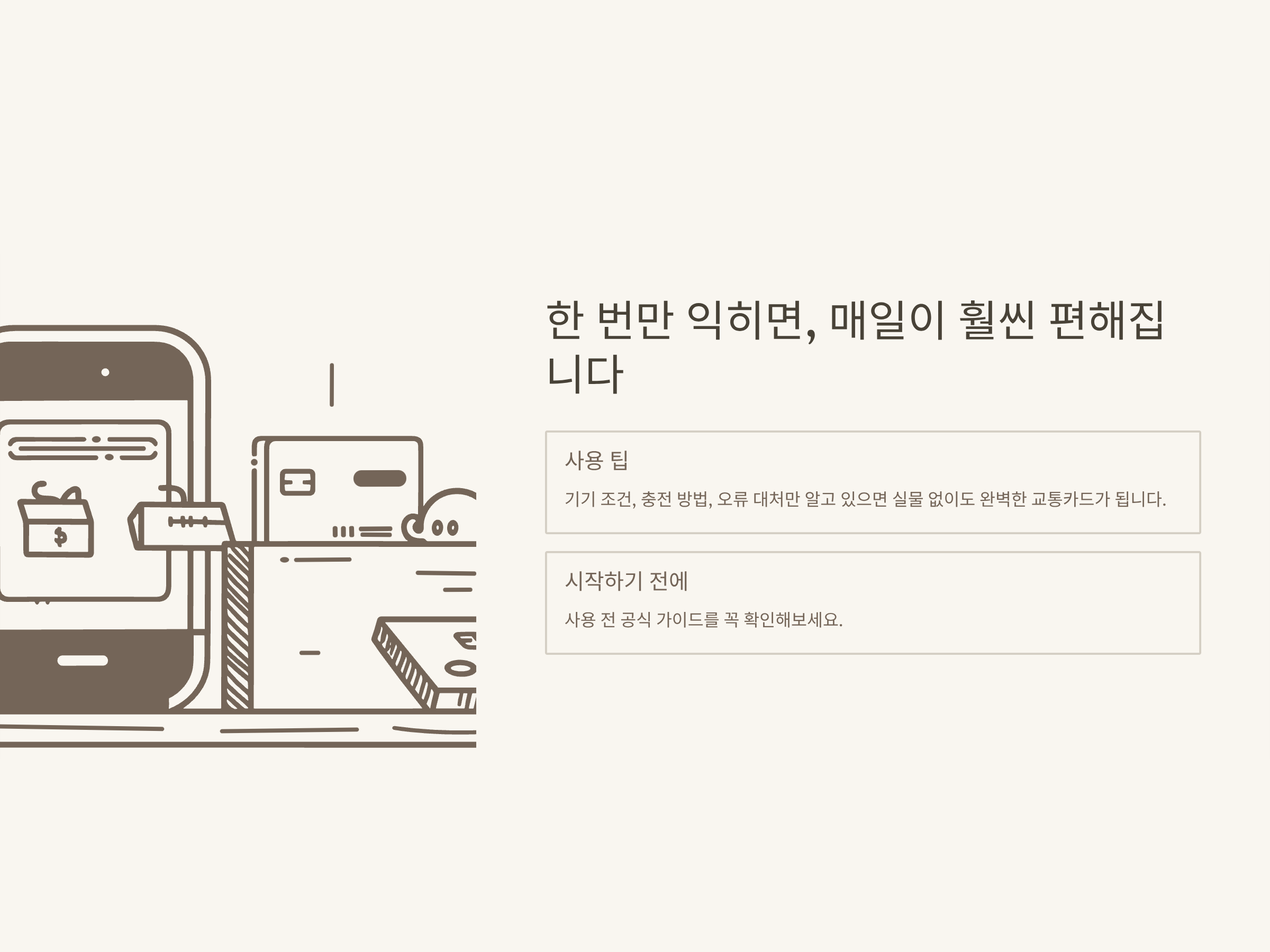 - 교통카드 등록 후 실물카드와 혼용 금지(아이폰)