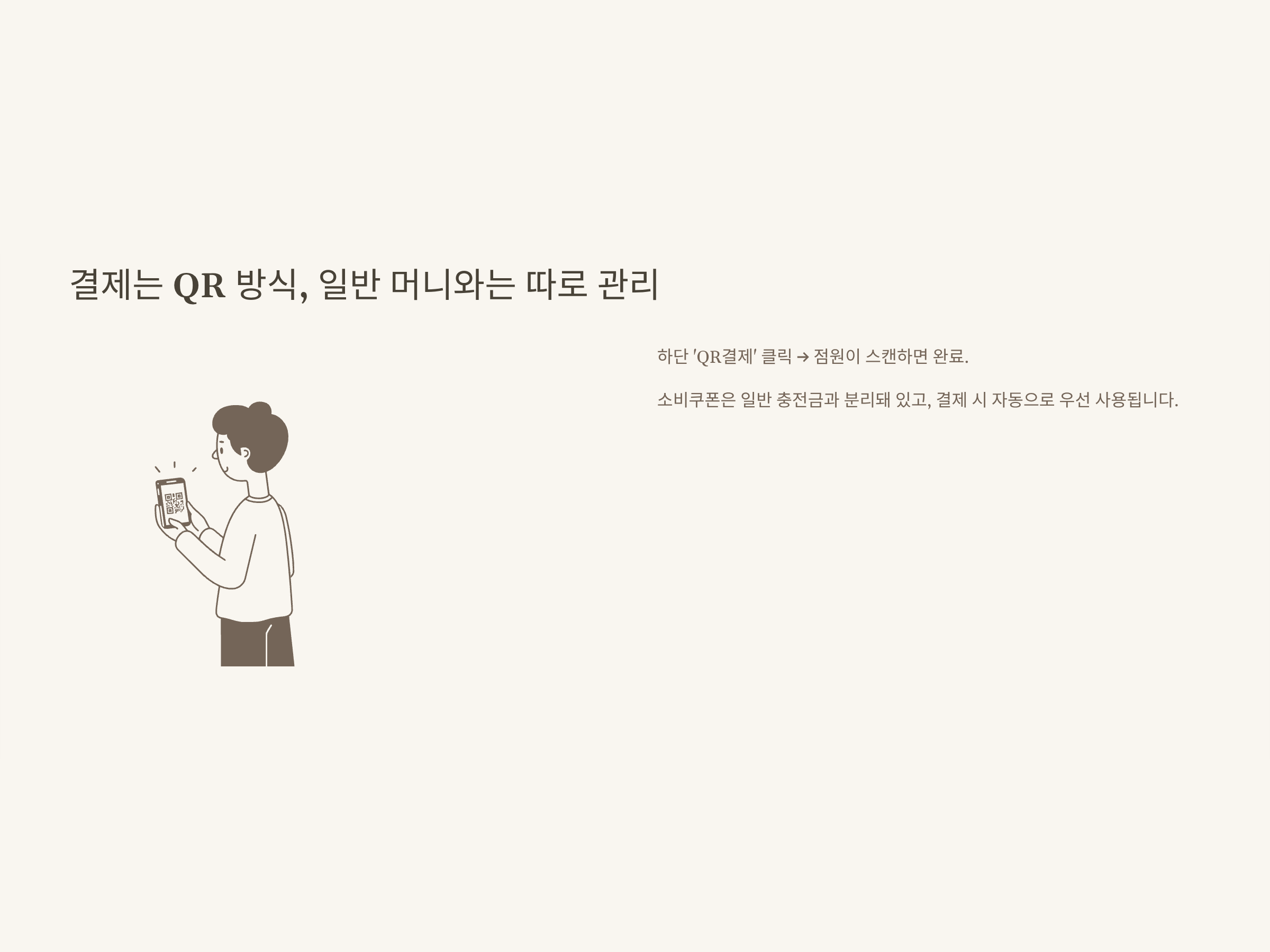 - 일부 가맹점은 결제 단말기 미지원으로 QR 사용 불가